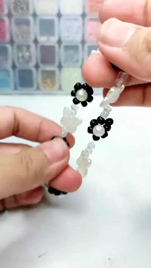 gelang daisy manik hitam ditambah topping kupu kupu biar rame 🥰#beadbracelets#idebisnis#manikmanik#tutorial##beadtutorial#belajarmeronce#beadskit