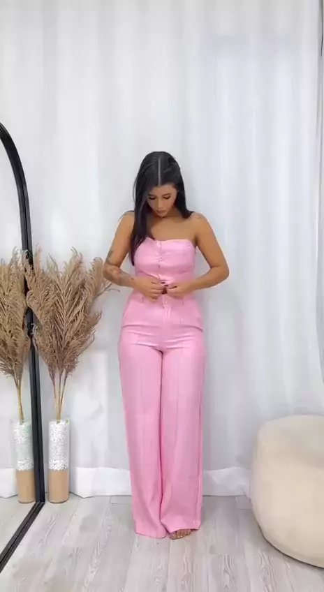 Conjunto Feminino alfaiataria blusa tomara que caia + calça pantalona ID do produto aqui 👉 APD-RZY-MWB #lookdodia #looks #lookinspiraçao #conjuntofeminino