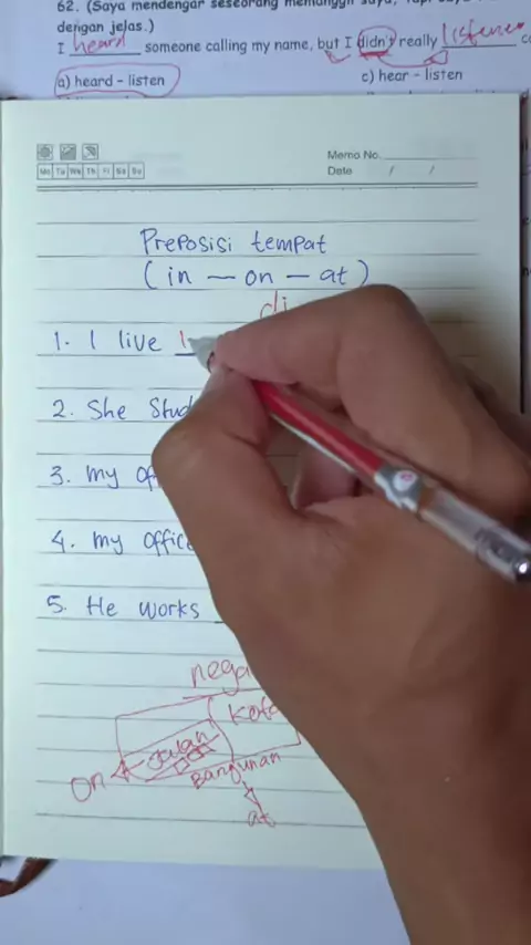 preposisi tempat in, on, dan at biar ga bingung lagi nih bedainnya #otodidakbahasainggris #belajarbahasainggris #pemulabahasainggris #bahasainggris #grammarlesson