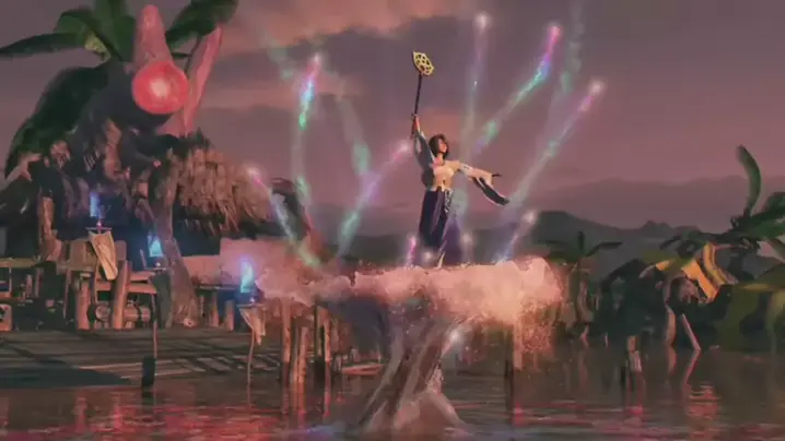 Yuna dança parte 2 de 2 Final Fantasy X é um jogo de RPG desenvolvido e publicado pela SquareSoft. Ele é o décimo título principal da série Final Fantasy e foi originalmente lançado como um exclusivo para PlayStation 2 em 2001. O jogo marcou a transição da franquia de fundos pré-renderizados para áreas tridimensionais, marcando também a primeira instância em que a série utilizou dublagem. Final Fantasy X substitui o sistema de combate "Active Time Battle" pelo "Conditional