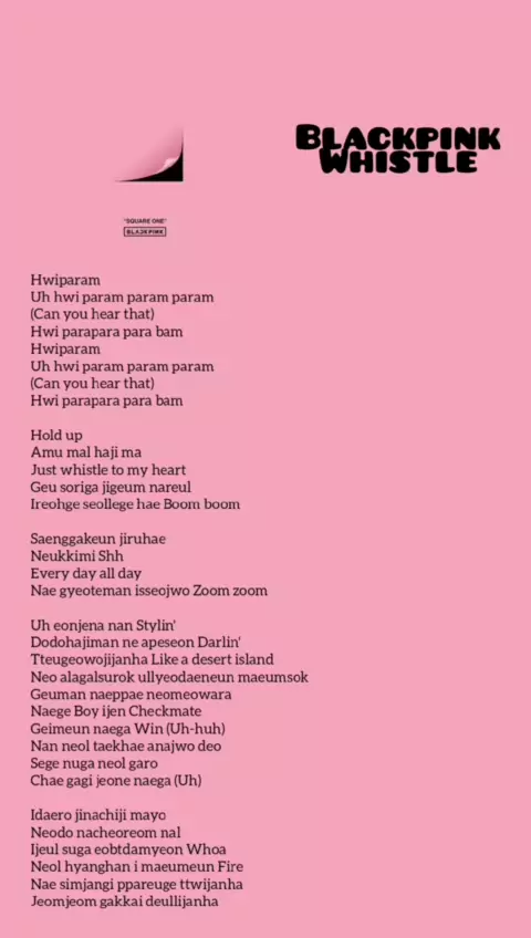 Blackpink - Whistle Lyrics#liriklagukpop#romanizationofkorean#romanizationlyrics#lagulagukorea#romanization#lagulagukpop#koreansonglyrics#lyrics#lyricsvideo#easylyrics#belajarbahasakorea#songlyrics#lirik#musiclyrics#r#songslyrics#songlyricaesthetic#wordingideas#songlyricsvideo#゚viral#dongggggggg#officiall❤️❤️#blackpink#blackpinkofficial#blackpinkinyourarea#blackpinkedit#blackpink붐바야#blackpinkconcert#jennie#jenniekim...