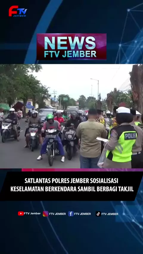 SATLANTAS POLRES JEMBER SOSIALISASI KESELAMATAN BERKENDARA SAMBIL BERBAGI TAKJIL
