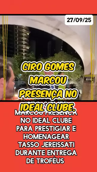 #cirogomes #Homenagem #presenca #trofรฉu #noticias. Ciro Gomes marcou presenรงa no ideal clube para homenagear Tasso Jereissati. 27/09/2025