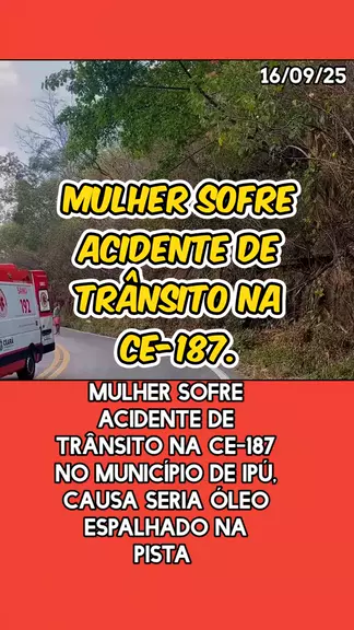 #mulher #acidente #transito #oleo #noticias. Mulher sofre acidente de trรขnsito na ce-187, no municรญpio de Ipรบ. 16/09/2025