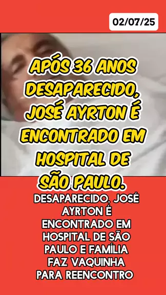 #solidariedade #familia #apelo #ajuda #noticias. Apรณs 36 anos desaparecido Josรฉ Ayrton รฉ encontrado em hospital de Sรฃo Paulo. 02/07/2025