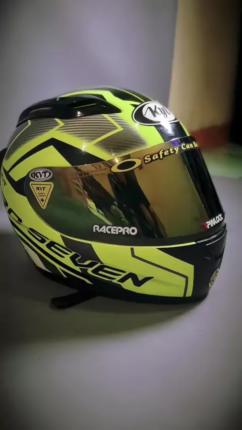Helm Motor Full Face KYT RC SEVEN #helm #helmet #helmkuning #helmfullface #helmganteng #helmkyt #helmmotor #kytrc7 #kytrcseven7paketganteng100 #sparepartmotor #sukucadangmotor #variasimotor #modifikasimotor #aksesorismotor #trendmotor