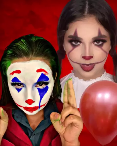 Os palhação do mal chegou pra ~acabar~ com a sua noite ... ops😬🤭 PARA MELHORAR SUA NOITE🤫🤡 . Não tem base essa dupla🤡🤡🤡🤡 @maryalonsomakeup . #itacoisa #coringa #palhaçochallenge #palhaçaodomalchallenge #maquiagemartistica #lavras