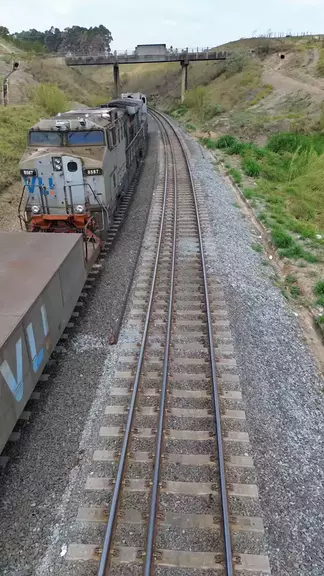 TREM DA VLI CARREGADO DE ENXOFRE PARADO COM OS VAGÕES ATRAVESSANDO O TÚNEL