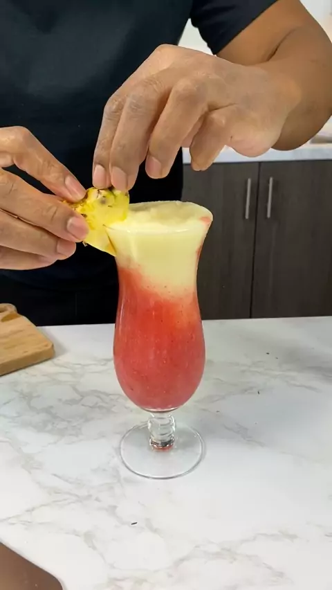 A strawberry volcano with banana lava! ππ #tipsybartender #banana #strawberry #beach #tropical #cocktails