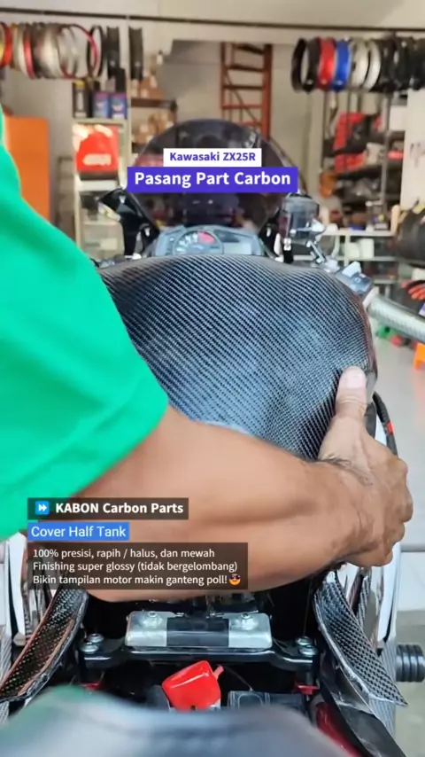 Kawasaki ZX25R Pasang Part Carbon🔥 . KABON Carbon Parts ⏩ Cover Half Tank 100% presisi, rapih / halus, dan mewah Finishing super glossy (tidak bergelombang) Bikin tampilan motor makin ganteng poll!😎 . . .#kabon#kaboncirebon#zx25rtmc#kawasaki#zx25r#zx25rr#kawasakizx25r#partkabon#carbonkabon#karbonkabon#partcarbonkabon#zx25r#cbr250rr#ninja250fi#ninja250#tunasmotorcirebon#tmc
