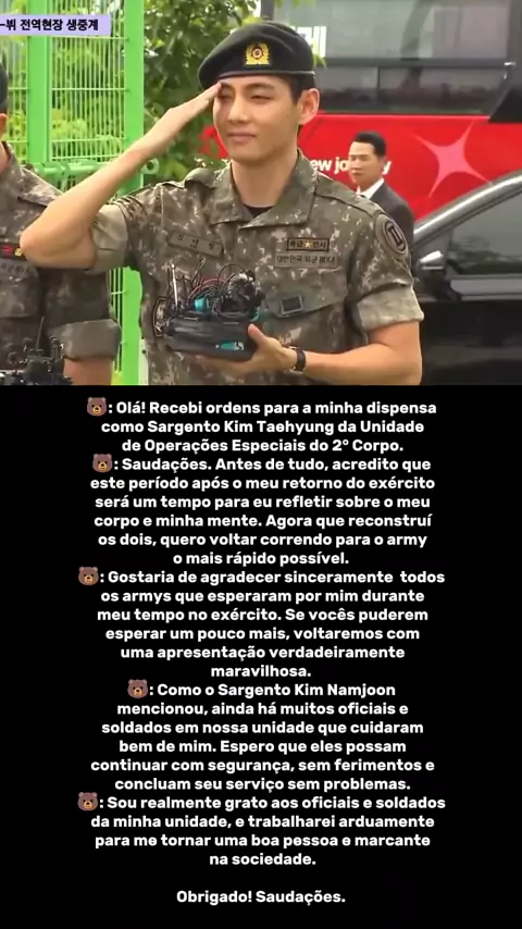 Tradução da entrevista do Sargento Kim Taehyung 💜💜 #BTS #ARMY #fy #kwai #viral