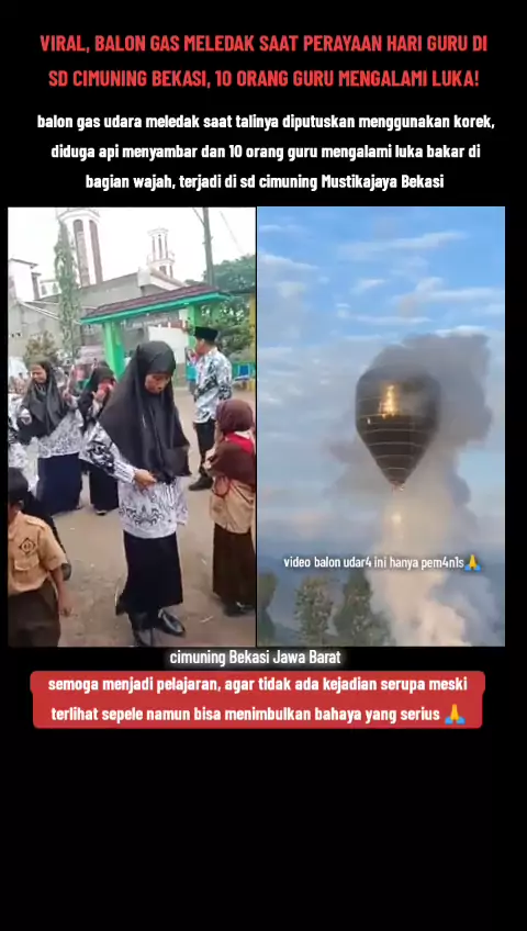 balon gas meledak saat perayaan hari guru di SDN cimuning mustika jaya Bekasi Jawa Barat, 10 guru mengalami luka bakar #sdncimuning #balongas #balonmeledak #hariguru