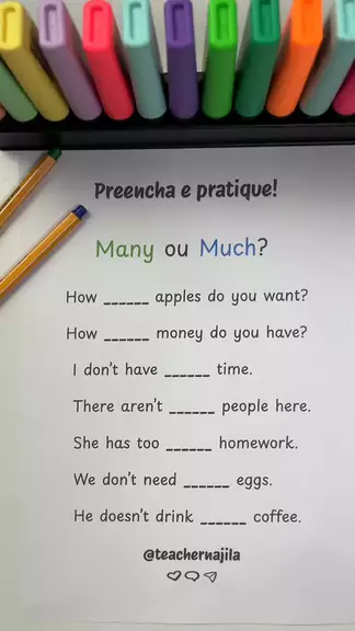 Many ou much? Me ajuda a completar! Vamos juntos praticar no vídeo! #inglespraticando #inglesparainiciantes #aprenderingles #teachernajila