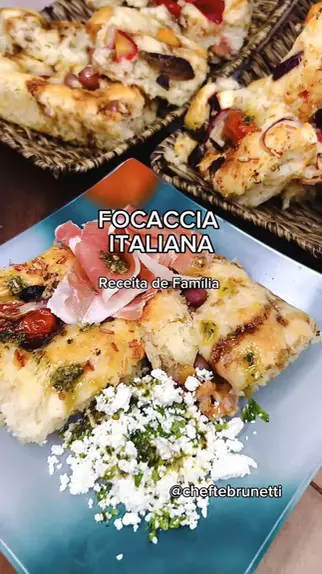 Focaccia - Receita de Familia. Que tal experimentar a minha receita, que inclui soro do leite, adicionando proteínas e proporcionando uma textura surpreendente? #cheftebrunetti #Receita #focaccia #paoitaliano #FoodPorn
