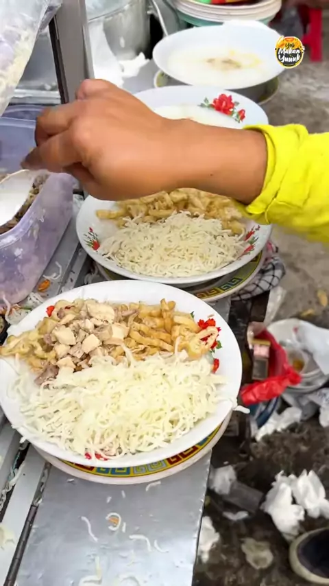 bubur ayam gak pake krupuk malah di ganti pake soun goreng, unik bgt !! #kubiler #streetfood Lokasi di map : Bubur ayam pak bakir, jakarta selatan
