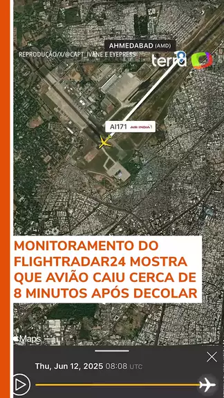 O serviço de monitoramento aéreo FlightRadar24 mostrou que o avião que caiu próximo ao aeroporto da cidade de Ahmedabad, no oeste da Índia, apareceu apenas 8 minutos no radar antes de perder contato. A aeronave, um Boeing 787-8 Dreamliner, caiu em uma área residencial após a decolagem, no início da manhã desta quinta-feira (12). #TerraBrasil #TerraNotícias #Avião #Aviação #Índia