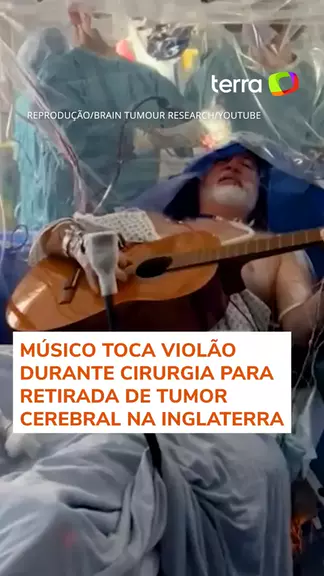 O músico Colin Miller, de 64 anos, tocou violão durante uma operação de 8 horas para a retirada de um tumor cerebral. “Para não perder a mobilidade da minha mão e dedos, eles me pediram para levar meu violão e eu fui acordado no meio da cirurgia e toquei músicas diferentes”, explicou. #TerraBrasil #TerraNotícias #Câncer #Tumor #Cirurgia