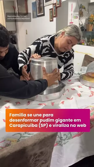 Uma família de Carapicuíba (SP) viralizou ao desenformar um pudim de 14 kg feito em um balde. 🍮 O vídeo, com mais de 6 milhões de visualizações, mostra o doce deslizando para o prato após momentos de suspense. A receita levou 20 latas de leite condensado, 6 litros de leite e 66 ovos, e o pudim foi consumido no mesmo dia. #TerraBrasil #TerraVídeos #Pudim #Família #Sobremesa 🎥 Reprodução/TikTok/oonlydudaazx/MyHood
