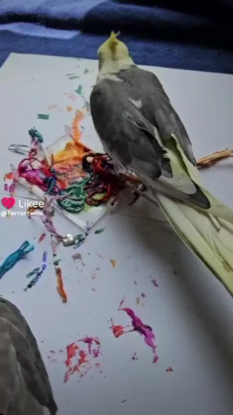 My birds love to paint! #cute #animals #BIRDS #cockatiels #Art