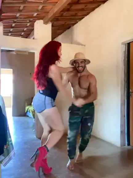 Meu marido e eu treinando em casa um forró kkk no salto 15cm 💥💥💥💥