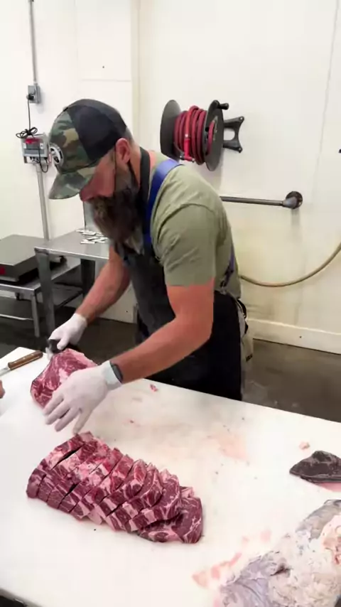 Cutting 42 day Dry-Aged Beef Chuck Eye Steaks🔪🥩#reels#beef#steak#dryager#bbq#barbecue#meat#butcher#butchering#thebeardedbutchers#