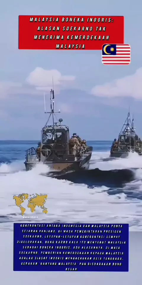 Malaysia Boneka Inggris: Alasan Soekarno Tak Menerima Kemerdekaan Malaysia Konfrontasi antara Indonesia dan Malaysia punya sejarah panjang. Di masa pemerintahan Presiden Soekarno, letupan-letupan konfrontasi sempat digelorakan. Bung Karno kala itu menyebut Malaysia sebagai boneka Inggris. Ada alasannya. Di mata Soekarno, pemberian kemerdekaan kepada Malaysia adalah siasat Inggris mengacaukan Asia Tenggara. Gerakan ‘Ganyang Malaysia’ pun disuarakan Bung Besar #malaysia #indonesia #trending #fyp