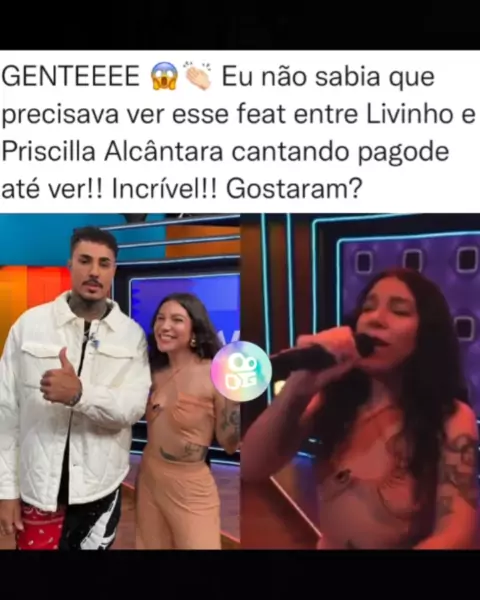 Gente e esse feat do Livinho e Priscilla Alcântara cantando pagode no #multishow, simplesmente tudo né?! Gostaram? 👏🏻 #mcLivinho #PriscillaAlcantara