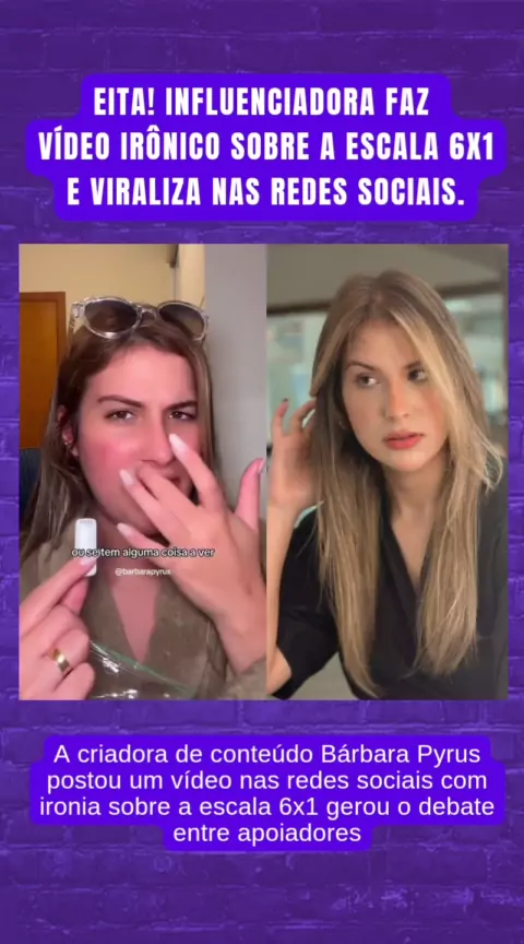 #fimescala6x1 A criadora de conteúdo Bárbara Pyrus postou um vídeo nas redes sociais com ironia sobre a escala 6x1 gerou o debate entre apoiadores #kwainoticia #KWAINOTICIAS #opiniao #trabalhadores