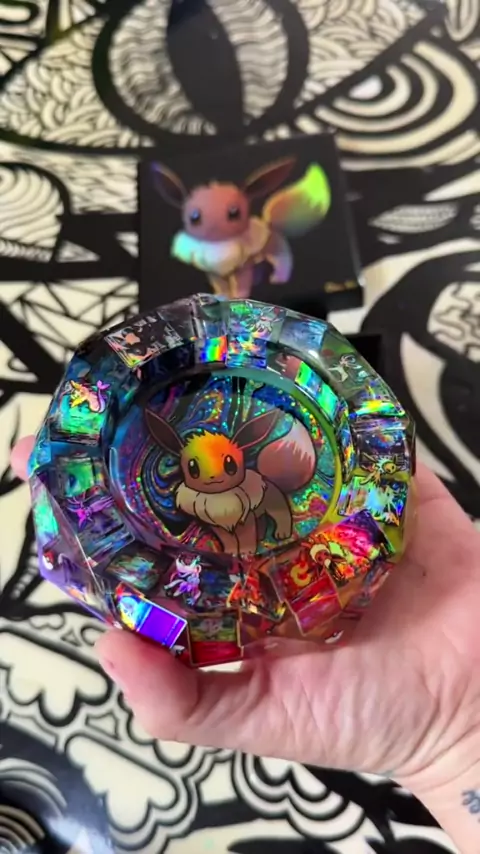 Hace MESES que quería hacer este cenicero de Eevee y sus evoluciones y quedó justo como pensaba 🥹 Estaba tan emocionada que olvidé unas cuantas tomas jeje sory #pokemon #art #resinart #ashtray #eevee