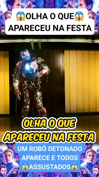 Um robô todo detonado aparece na festa e deixa todos assustados olha #filme #AÇÃO #herois #robos #vingadoresaeradeultron