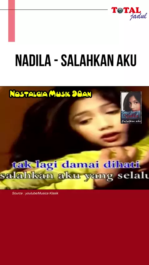 Dari banyak penyanyi baru yang muncul di pertengahan 90an, nama NADILA termasuk yang mendapat banyak sambutan. Album pertamanya "SALAHKAN AKU" yang dirilis tahun 1996 langsung mendapat tempat di industry musik tanah air. Judul Album : Salahkan Aku Tahun Rilis : 1996 Produser : Rummy Azies & Dhiemas AS Produksi : Musica Studio’s #musik90an #lagu90an #totaljadul # #viral 更多