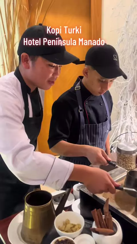 Disajikan kopi Turki di Hotel Peninsula, Kota Manado, Sulawesi Utara, Selasa (25/2/2025) malam. Kopi dicampur aneka rempah. Pengunjung bebas ingin kombinasikan jahe, cengkih, pala maupun kayu manis.