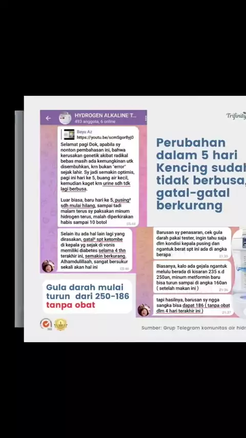 Testimoni realTurun gula darah secara bertahap dgn rajin minum air hidrogen alkali setiap hari @Trifinity Simpel, aman dan mudah diterapkan#airalkali #alkalinewater #botolalkali #airhidrogen #hydrogenwater #botolhidrogen #airzamzam #diabetes #kangenwater #reviewbotoltrifinity #antioksidan #imunitas #botoltrifinity #trifinity