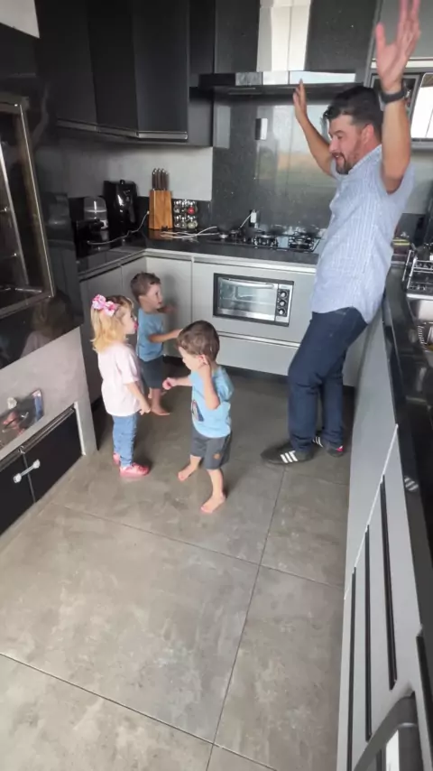 Enquanto o pai lava a louça os trigêmeos dançam #diadascriancas #criancas #trigemeos #danca #deciovitoriaedante