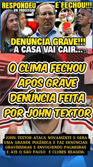 JOHN TEXTOR FAZ DENÚNCIAS GRAVE E A CASA PODE CAIR SE FOR TUDO COMPROVADO. #saopaulo #palmeiras #Brasileirão #copadobrasil