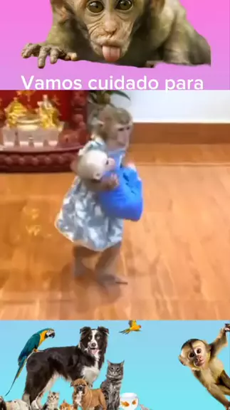 Macaquinhoa leva seu irmão com td cuidado pra ñ derrubá-lo para comerem #macaca #Filhote #animais #EstrelaDeFamília