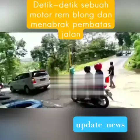 Detik-detik motor rem blong dan menabrak pembatas jalan. kejadian di Tikungan tajam dan menanjak di jalur Desa Lumbang rejo, kec. prigen kab. Pasuruan atau yang sering disebut jurang ampel oleh warga sekitar. kali ini sebuah motor matic yg mengalami rem blong dan menabrak pembatas jalan. berhati hati lh dalam berkendara dan lbh waspada. #videokecelakaan #update_news