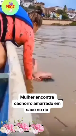 Mulher encontra cachorro amarrado no rio 16/03/23 #noticia #noticias #news #fy #kwai