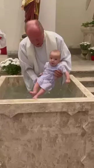 padre batizando criança feliz #batismo #sorriapravida # #bebesfofos #padre #Criança #