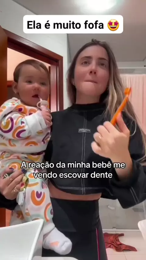 criança rindo da mamãe escovando dente #kawaiagosto # #alegria##baby##viraliza##humor #