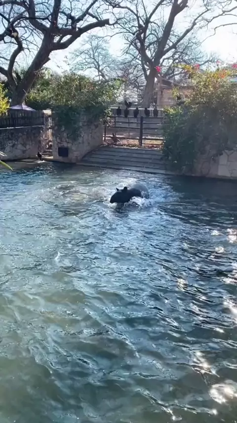 Kruze got his day started with some water aerobics! #zoo #animals #cute #funny #fyp #foryoupage #tapir #nature #wildlife #Fitness #workout #aerobics