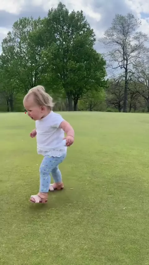 Eliza goes golfing for the first time!! ⛳️ #babyvoiceover #voiceeffects #sillybaby #laughingbaby #babyvoice #voiceover #fyp #foryoupage #funnykids #funnybaby #sisters