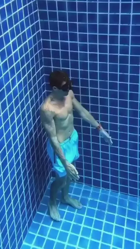 Those who bored working out in the pool, have you tried gymnastic # ♂️W a t e r e x e r c i s e is e a s i er 😂 . . #diversão #subaquática #brincadeira #flume #underwaterfun #playfulness #swimming