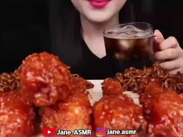 #asmr fried chicken, Black bean noodles 🤤 #jane #janeasmr #janeasmr제인 #asmrsounds #blackbeannoodles #friedchicken #viral #foryou #fyp.