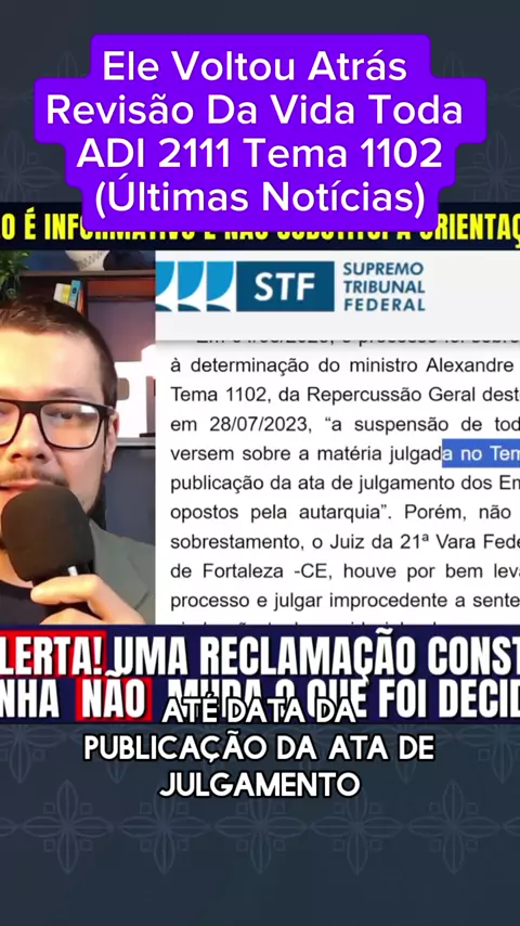 ELE VOLTOU ATRÁS REVISÃO DA VIDA TODA ADI 2111 TEMA 1102 STF (ÚLTIMAS NOTÍCIAS) #viraliza #maisviews #benefício #Noticia #familiatoppg