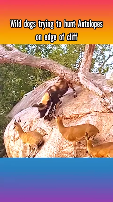 Wild dogs trying to hunt Antelopes on edge of cliff #wildanimals #animalworld #animals #wilddog #antelope #wildnature #wildlife #wildlifephotography #predator.