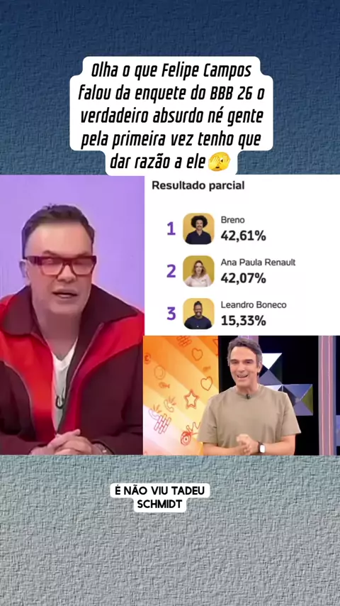 Olha o que Felipe Campos falou da enquete do BBB 26 o verdadeiro absurdo né gente pela primeira vez tenho que dar razão a ele #maisviews #viraliza #fofocadosfamosos #viral #bbb26