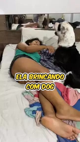 ela brincando com o cachorro.