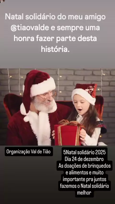 as doações de brinquedos e alimentos e muito importante pra juntos fazemos o Natal solidário melhor