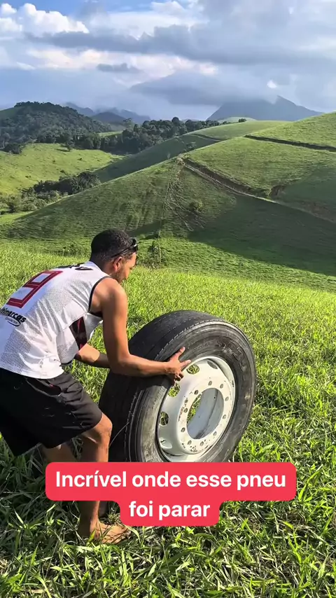 Joguei um pneu montanha abaixo e esse foi o resultado #pneu #montanha #desafio #fun #hunters
